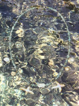 Gemstone arrives already ancient. Lapis lazuli flecked with gold pyrite. Peridot born of volcanic fire. Aquamarine pale as water over white sand. Iolite, shifting blue-violet, once used by Viking navigators to find the sun. Each stone carries its own provenance, its own rare beauty, its own particular way of holding light — dreamy, shifting palettes that move with the wearer like the earth and sea in miniature.